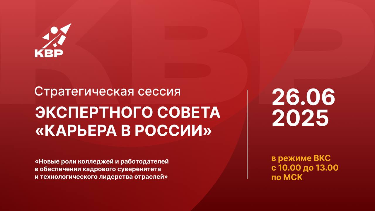 Большая стратегическая сессия экспертного сообщества КВР «Новые роли колледжей и работодателей в обеспечении кадрового суверенитета и технологического лидерства отраслей» пройдет 26 июня 2025 г. Мы приглашаем вас к открытому живому диалогу про будущее профессионального образования, которое создается уже сегодня.